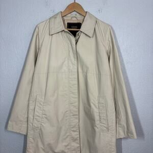 Coach Jacket Trench Hidden Button Collar Khaki Casual Resistant Camel Coat - L