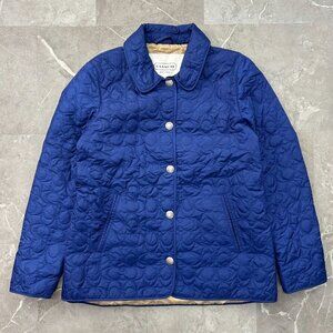 Coach Jacket Womens Large Quilted Light Weight Blue Snap Button Collared