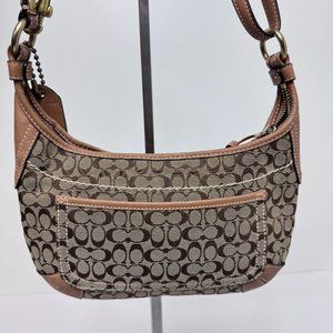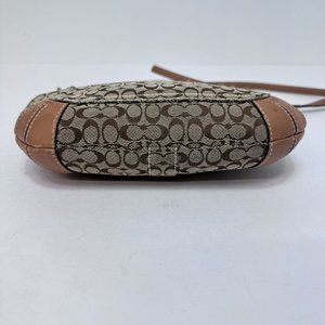 Coach Jacquard Logo Zip Top Baguette Convertible Shoulder Bag Brown