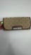 Coach Flap cream sateen wallet.Brown leather interior. Bifold style about 8x4, includes zip coin purse, ID slot, billfold, ample credit card slots. Silver hardware with Snap closure