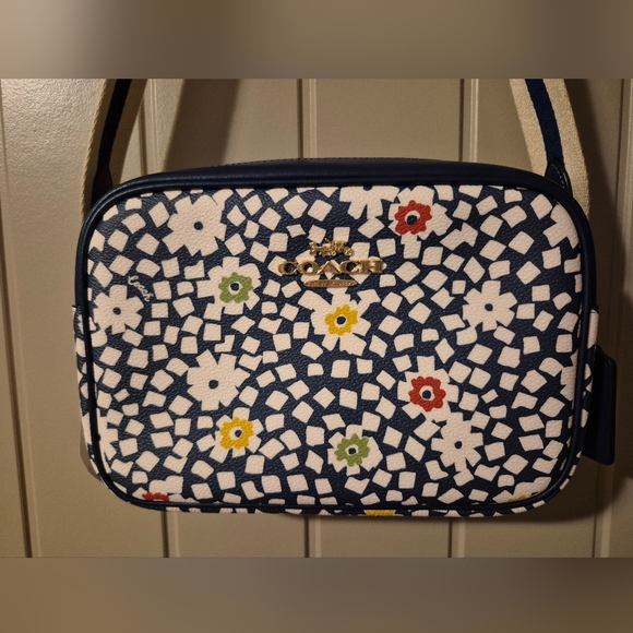 Brand new with tags Coach Jamie Camera bag in deep blue multi flower. I purchased this brand new from Coach. Never used. Store in a purse bag out of light, heat, and humidity.