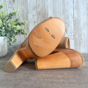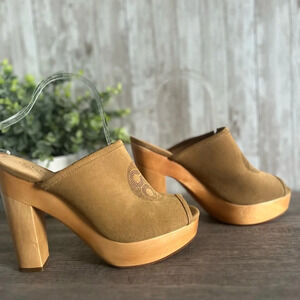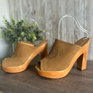The perfect shoe to transition through the seasons. Beautiful suede tan and wooden heel. In really great, lightly used condition. Size 8