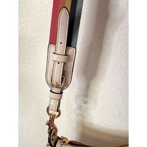 Coach Jess Baguette Pebble Leather Rainbow Strap Crossbody Bag White
