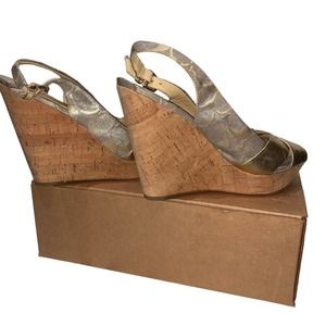 Coach - Jessy gold and cork wedges Slingback style, size9
