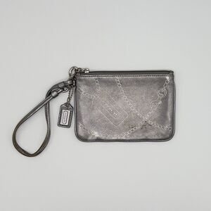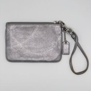 Coach Jewel Leather Wristlet Silver/Silver No 43304 Hangtag Ball Chain Print