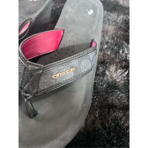 Coach Jolene Leather Platform Signature Flip Flop Sandals 8 B Signature C Black