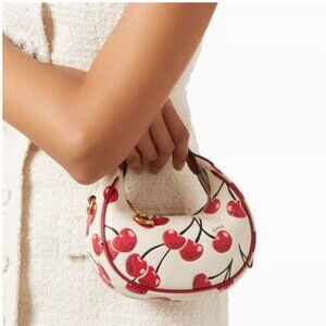 Ahead of the curve, the Jonie is a rounded style that’s part crescent silhouette, part hobo and all attitude. The compact style is crafted of buttery soft glovetanned leather featuring a cheerful cherry print and finished with a secure zip-top closure detailed with signature C hardware. Carry by hand and wear as a wristlet with the interlocking top handle for nights out or add the detachable leather crossbody strap for days on the go. (Explore the possibilities.)
