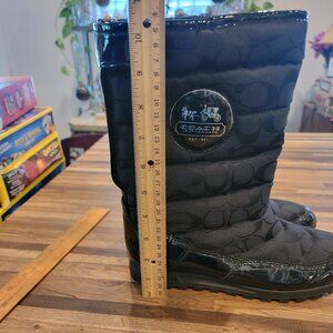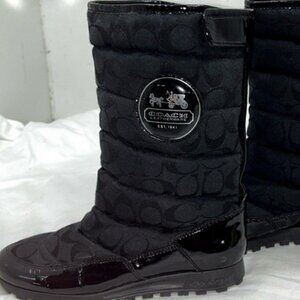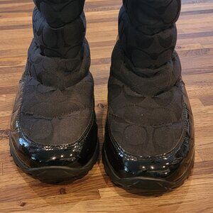 Coach Signature Quilted Winter Boots Black Patent Nylon Snow Warm