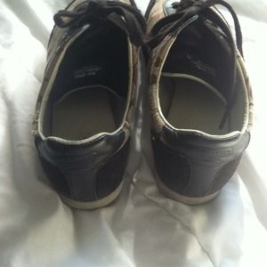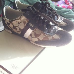Classic coach logo shoes lightly worn. Slight fraying on left shoe near the ankle. Very comfortable, neutral color, classy sneaker. IF items are deleted, they have sold on my Vinted. Happy Poshing! 🚫Trades/PP🚫