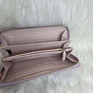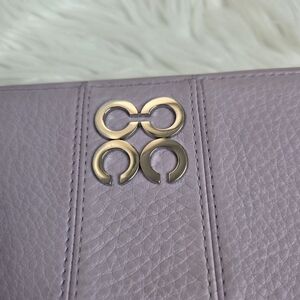 The Coach Julia Leather Long Wallet in Lavender Pebbled Leather is a stylish and practical accessory for women. Made from high-quality leather in a solid purple color, this zip-around wallet features multiple credit card slots for easy organization. With its one-size-fits-all design and canvas fabric type, this wallet is both elegant and functional, making it a perfect addition to any wardrobe.