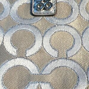 Coach Julia Op Art Lurex Wristlet Wallet Silver Signature Leather Trim