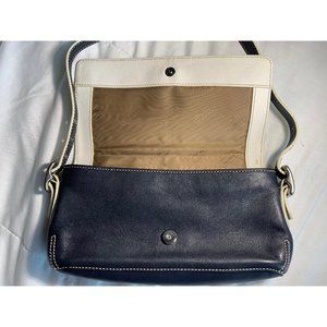Coach K043-4280 Crossbody Bag in Navy leather with Cream stitching, strap and accents.
