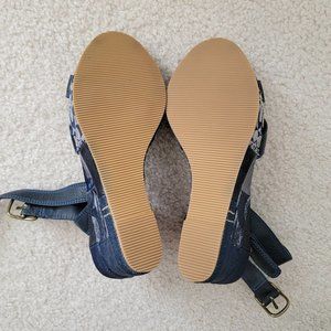 Coach Kallista Patchwork Wedges Indigo Blue Multi C Logo Size 5 NEW