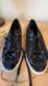 Coach sneakers with black suede logo pattern.