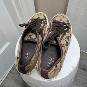 Coach Kalyn Signature C Khaki Brown Sneakers Low Tops Lace Up Womens 7.5 B🌴