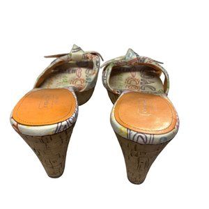 Coach Karen Graffiti Poppy Pop Cork Heel Slide Multicolored Summer Sandals Sz 8B