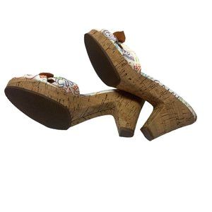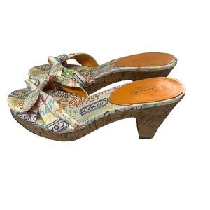 Coach Karen Q447 Multicolored Sandals Graffiti Poppy Pop Cork Heel Slide Shoes