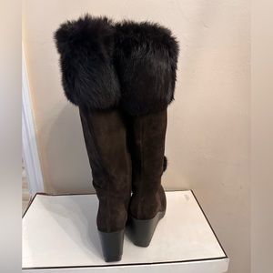 Beautiful suede boots trimmed in fur.