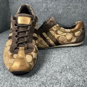Coach Kate Shoes Women's 8.5M Q048 Gold Trim Monogram Athletic Tennis