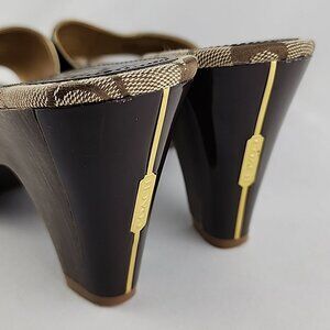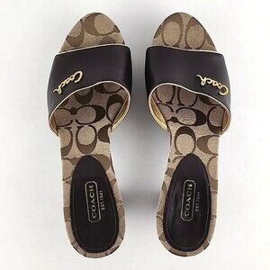 Coach Kathie Slides Dark Brown Leather Signature Log Mid Heel Size 8.5B