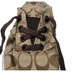 Coach Katie Casual Shoes Women's size 8 B Brown Slip On Signature Canvas Sneakers Preppy Boho Summer Beach Coastal