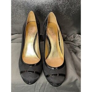 Coach Kerryann Black Wedge Heels 7B Monogram Canvas, Patent Trim, Chic