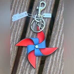 Add a touch of summertime charm to your bag with this red, white, and blue pinwheel Coach key chain bag charm.