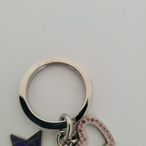 Coach Key Chain Ring Fob Ring Bag Charm Silver Keychain Hearts Stars Purple