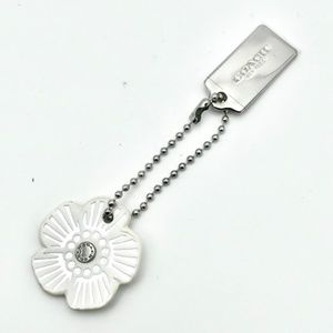 Coach Key Fob Bag Charm Keychain Hang Tag Leather Flower Hangtag