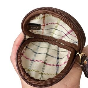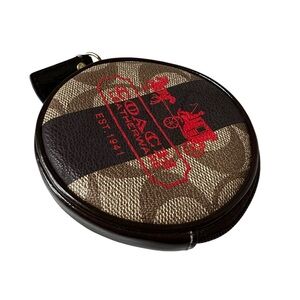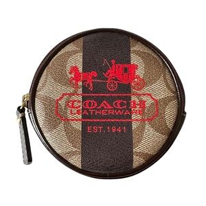 Coach Khaki Brown & Red Horse & Carriage Round Tattersall Coin Pouch