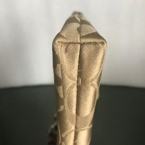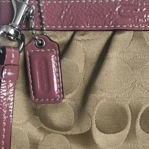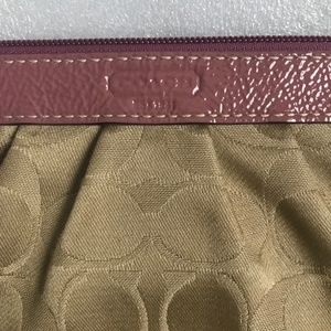 Coach Khaki/Pink Canvas Leather Signature C Corner Zip Pleated Wristlet