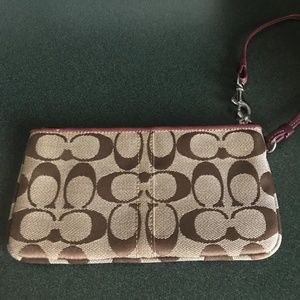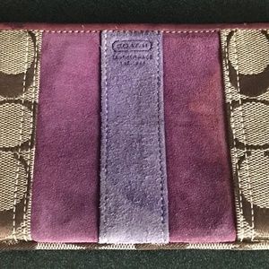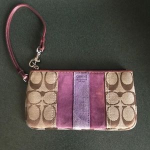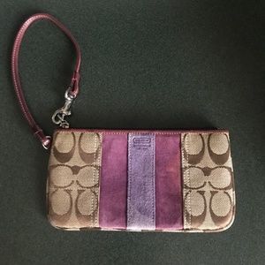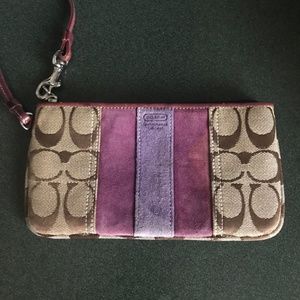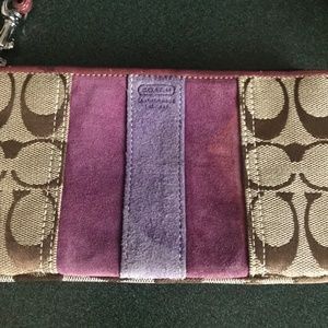 Coach Khaki/Purple Canvas Leather Suede Wristlet