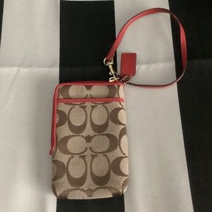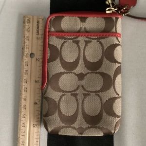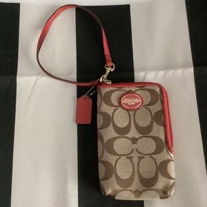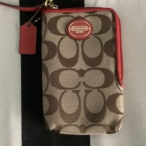 Coach Khaki/Red Canvas Leather Wristlet Mini Pouch