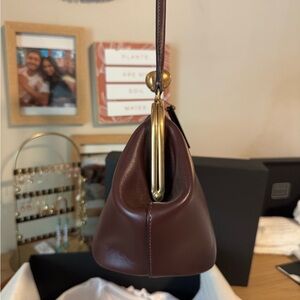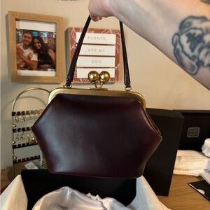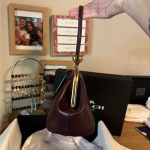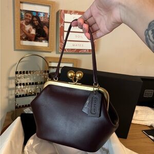Coach Kisslock Frame Bag 16 in Brass/Black Currant Glovetanned Leather NWT