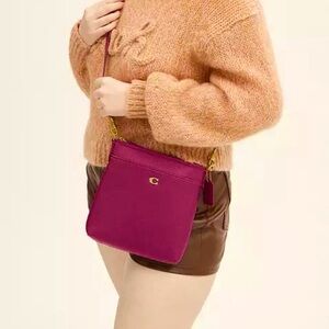Coach Kitt Messenger Crossbody Bag in Deep Plum & Gold Style CC526