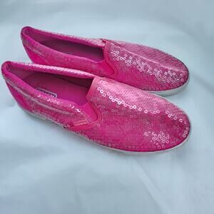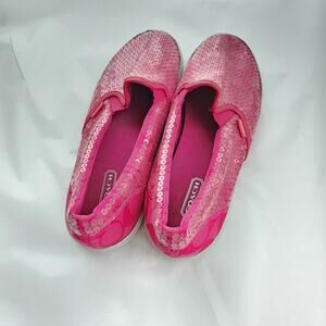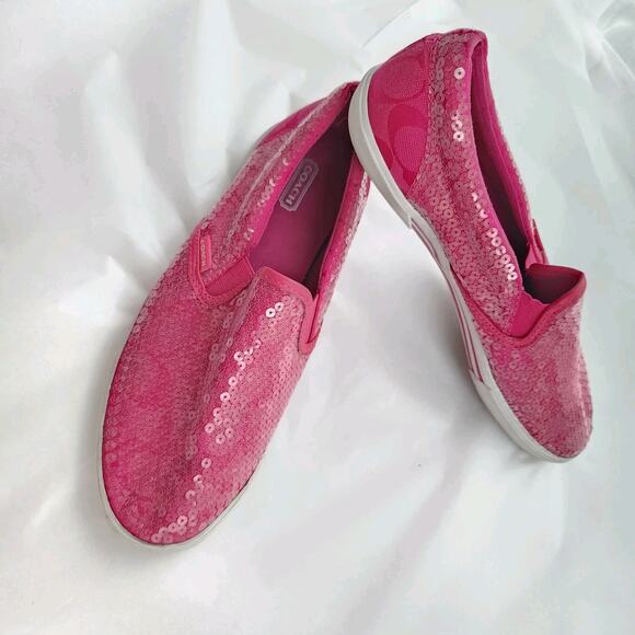 Coach Kivy Slip On Shoes resort Size 8.5 Pink Sequin C Signature Logo Loafers