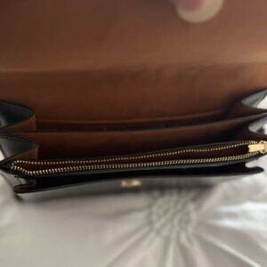 This can be worn cross-body or on the shoulder. Features: Front flap closure, gold Coach logo, detachable Coach hangtag, chain & leather strap.