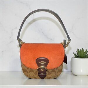 Coach Kleo Bag 17 #C5691 Orange Suede Signature Canvas Convertible Handbag Small