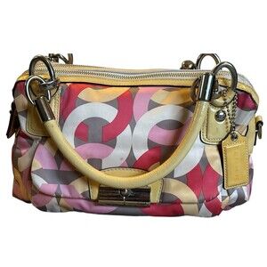 Coach Kristin Chain Link Multicolor Print Satin Shoulder Bag