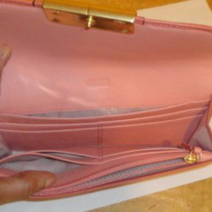 It is the perfect size and fits everything you need comfortably! I have many pinks so I am parting with this one that I bought at the Coach Store on Madison Avenue for 238 plus tax. This wallet is very difficult to find!