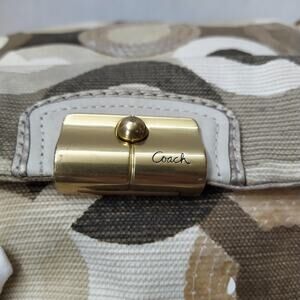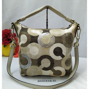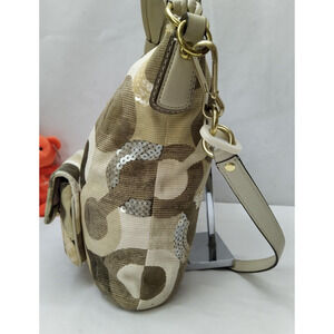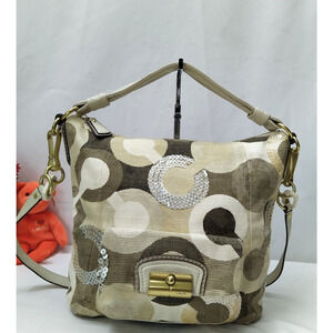 Coach Kristin Signature Siquin Canvas Leather Buckle Zipper Hobo Shoulder Bag
