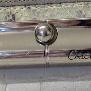 Beautiful Coach Kristin convertible leather hobo shoulder bag in beige. Has front pocket with reptile embossed accents. The clasp has some scratches near the bottom and inside the pocket there are 2 marks located directly behind the clasp. There are signs of handling below the clasp as well. Bag has 2 hang tags and beautiful straps. Crossbody strap is detachable. This all leather bag is beautiful aside from normal wear. VGUC! Come take a look in one of my live shows!