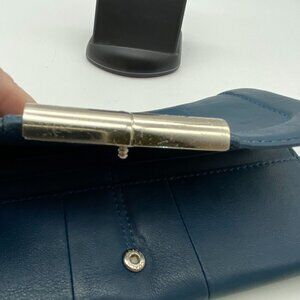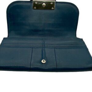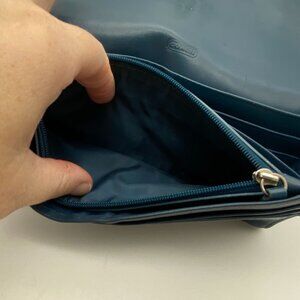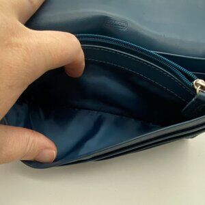 Coach Kristin leather wallet silver buckle bill fold pocket book teal green blue