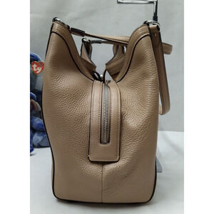Coach Kristy Taupe Beige Pebble Leather Triple Compartment Shoulder Bag