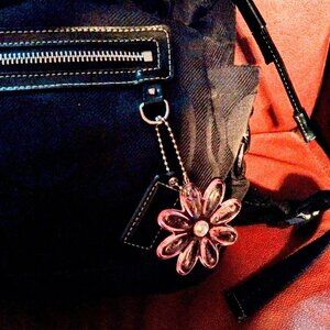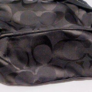 The Coach Kyra Daisy Black Signatured Jacquard Backpack is a stylish and versatile accessory for women. With a trapezoid shape and medium size, this backpack features a black exterior with silver hardware accents. The bag includes an outer zippered pocket, an adjustable shoulder strap, and a drawstring snap closure for added security. The signature daisy charm adds a touch of whimsy, making it perfect for travel, casual outings, or everyday use. Made with canvas and leather materials, this bag exudes a classic designer style that is both timeless and on-trend. Barely if ever used.