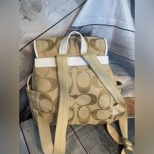 COACH 16556 SIGNATURE KYRA DAISY KHAKI JACQUARD BACKPACK BAG 12x11x5”