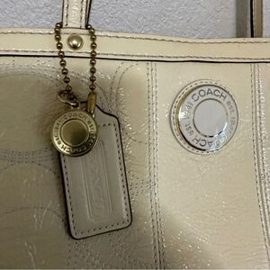Coach L1276-F19215 Signature Stitched Patent Leather Framed Shoulder Bag - Cream