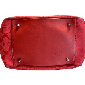 Coach LTD Signature C Belted Canvas Purse Satchel Carryall Tote Bag Red Tan