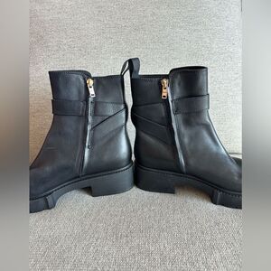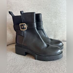 Coach Lacey Leather Lug-Sole Ankle Boots Black Size 8.5