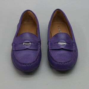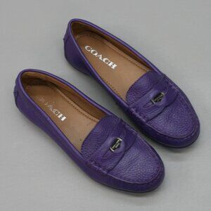 A pair of women's Coach Penny loafers purple grape violet moccasin loafers.